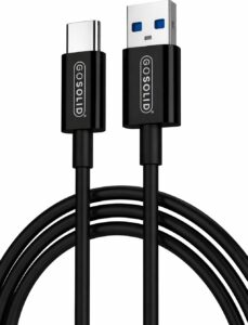 GO SOLID! Cabo de carga USB para USB-C, 1 m, preto. Cabo resistente para carregamento e transferência de dados. Conectores reforçados para maior durabilidade e uso diário. Suporta carregamento rápido e comunicação estável entre dispositivos. Compatível com Samsung e iPhone.