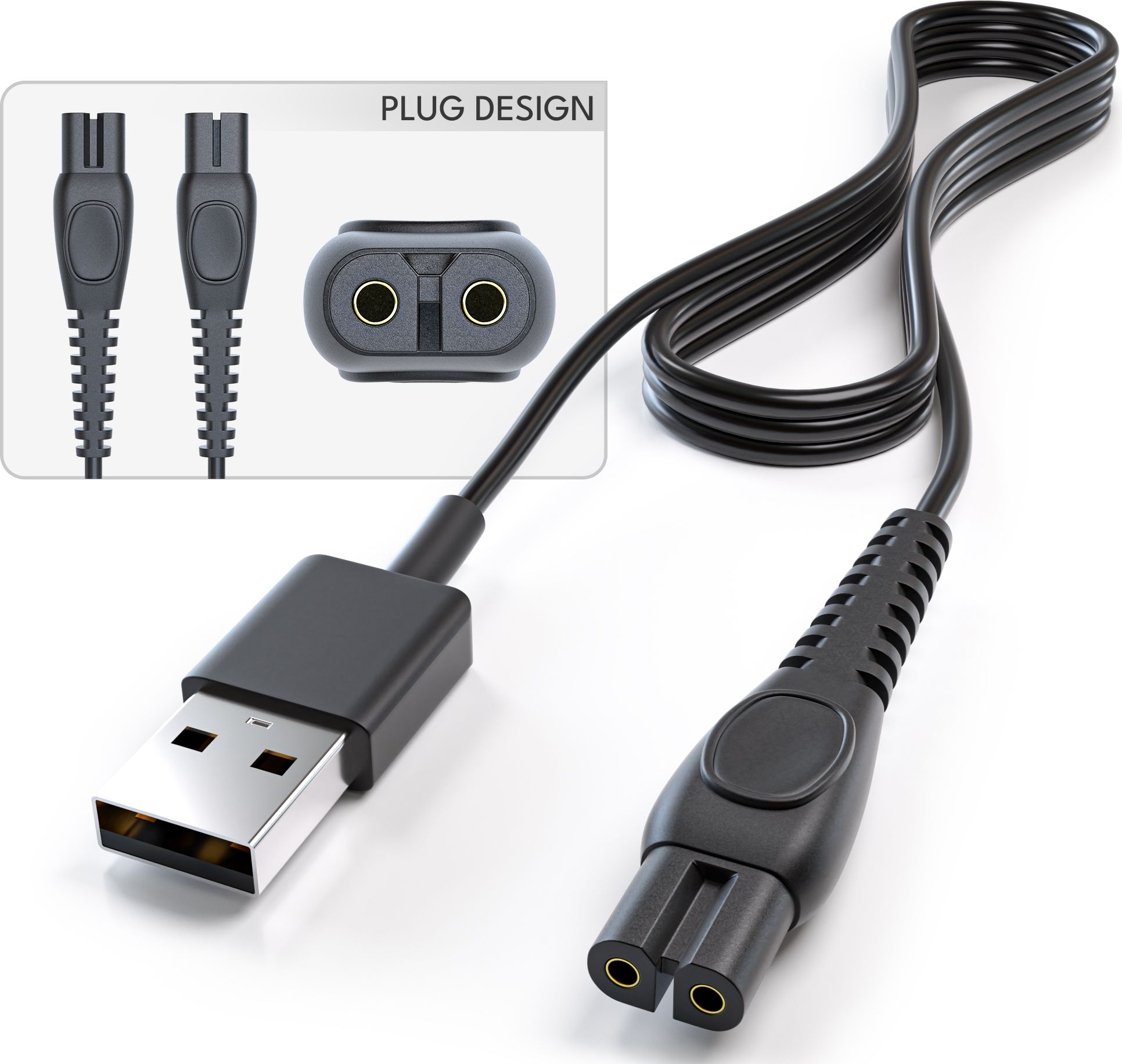 O cabo de carregamento tem um comprimento total de 92 cm! Assim, tem liberdade de movimento suficiente para carregar o seu Aparador All-in-One Philips.
