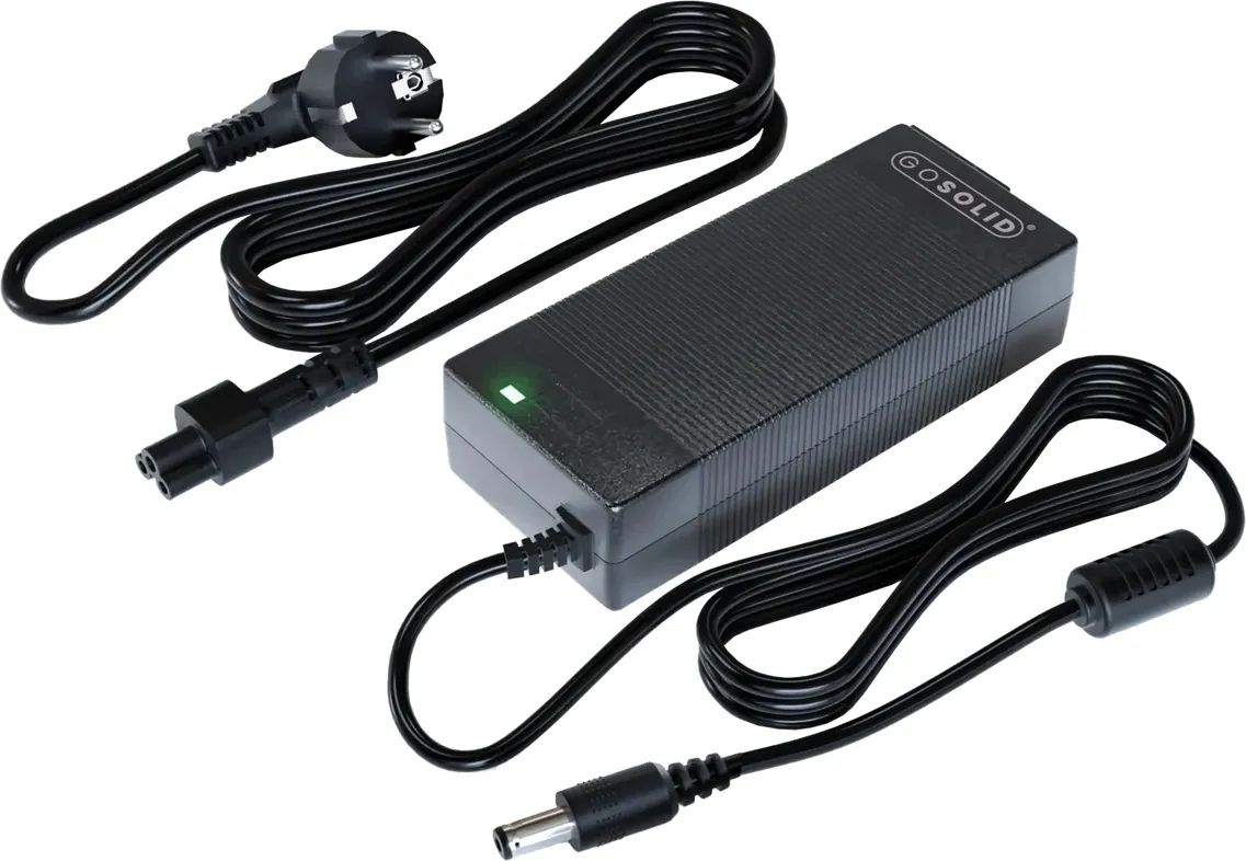 Carregador GO SOLID! 54.6V 2A projetado para baterias Duotts N26. Compacto e leve, oferece carregamento eficiente com proteções integradas contra sobrecarga, sobrecorrente, curto-circuito e superaquecimento. Indicador LED para estado de carga. Instalação simples plug-and-play. Compatível com Duotts N26.