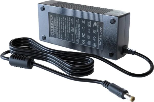 Carregador substituto GO SOLID! para bicicleta elétrica, compatível com Lankeleisi. Compatível com os modelos MG600 Plus e RX800 Plus. Design compacto e leve para transporte e armazenamento fáceis. Proteções integradas contra sobreaquecimento, sobretensão e curto-circuito para carregamento seguro. Ótima opção como carregador de substituição ou adicional.