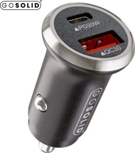 Carregador automóvel compacto 45W com portas USB-A e USB-C para carregamento rápido em movimento. USB-C (PD) fornece até 45W para telemóveis, tablets e portáteis leves; USB-A suporta protocolos de carregamento rápido. IC inteligente ajusta a potência e protege contra sobrecorrente, sobretensão e curto-circuito. Design compacto para tomadas 12V/24V — ideal para viagens. Compatível com Apple, Samsung, Google, Huawei e OnePlus.
