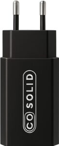 Carregador USB compacto GO SOLID! 5W (5V/1A) com porta USB‑A para carregamento fiável de smartphones e smartwatches. Compatível com smartphones e smartwatches. Design leve e compacto, ideal para casa e viagens. Proteções integradas contra sobrecorrente, sobretensão e curto‑circuito para carregamento seguro. Plug-and-play: utilize qualquer cabo USB de carregamento.